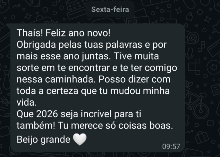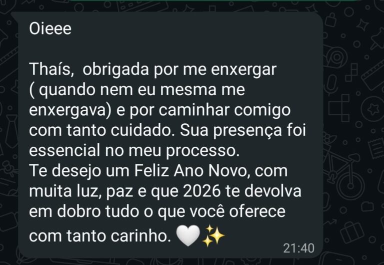 Sou Thais Gonçalves, psicóloga e neuropsicóloga, e há mais de 6 anos ajudo mulheres a saírem do ciclo de exaustão emocional, autocobrança e medo constante, para viverem com mais calma, clareza e segurança interna.